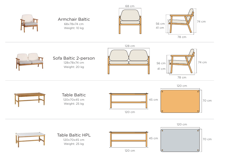 Baltic Dining kollektsiooni mööbel on valmistatud vastupidavast akaatsiapuust, mida on töödeldud spetsiaalse naturaalse õliga.