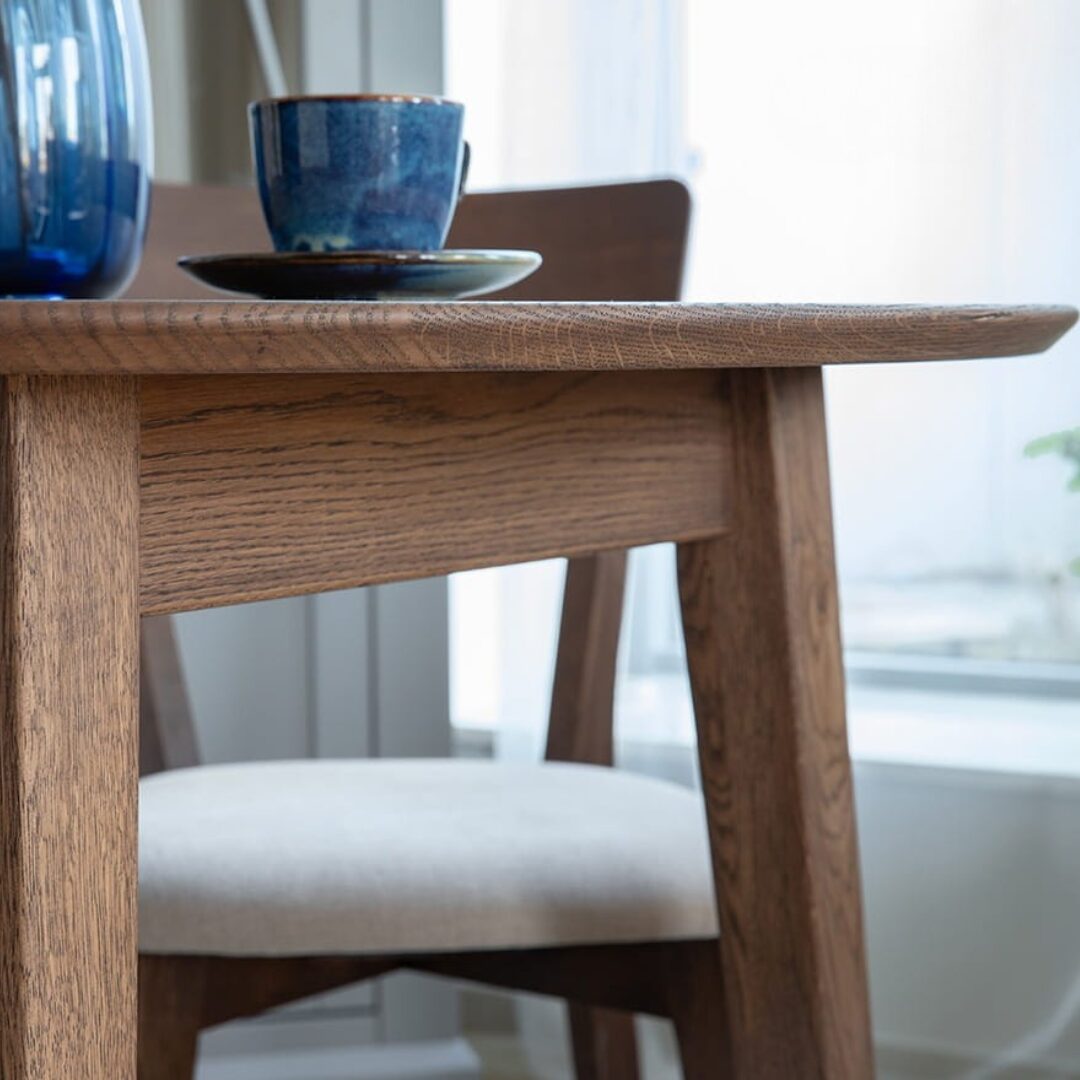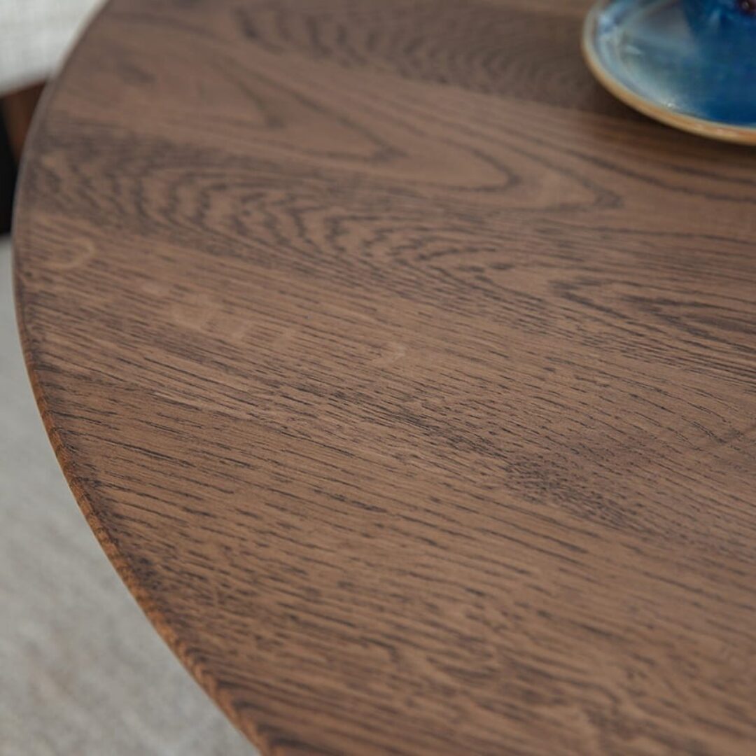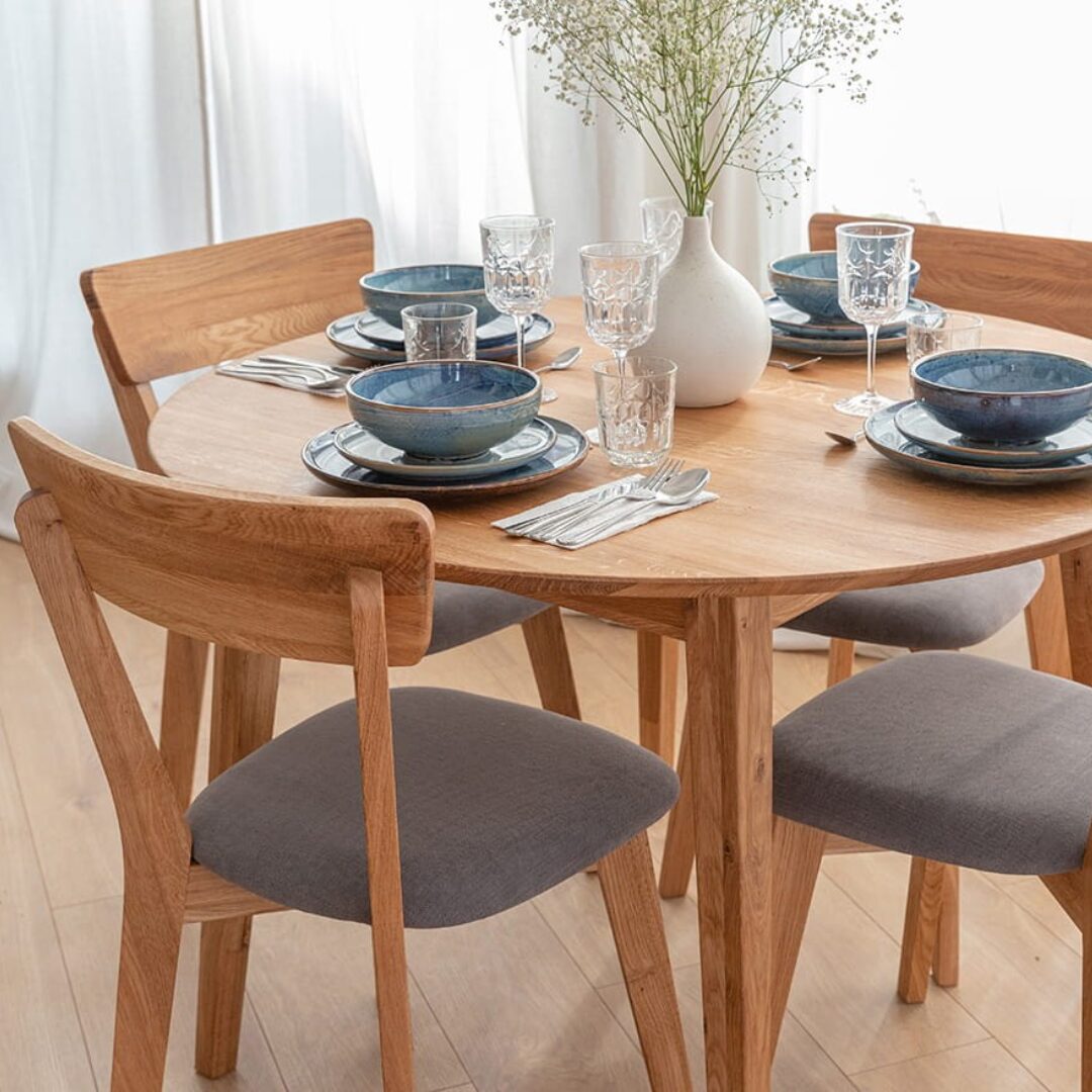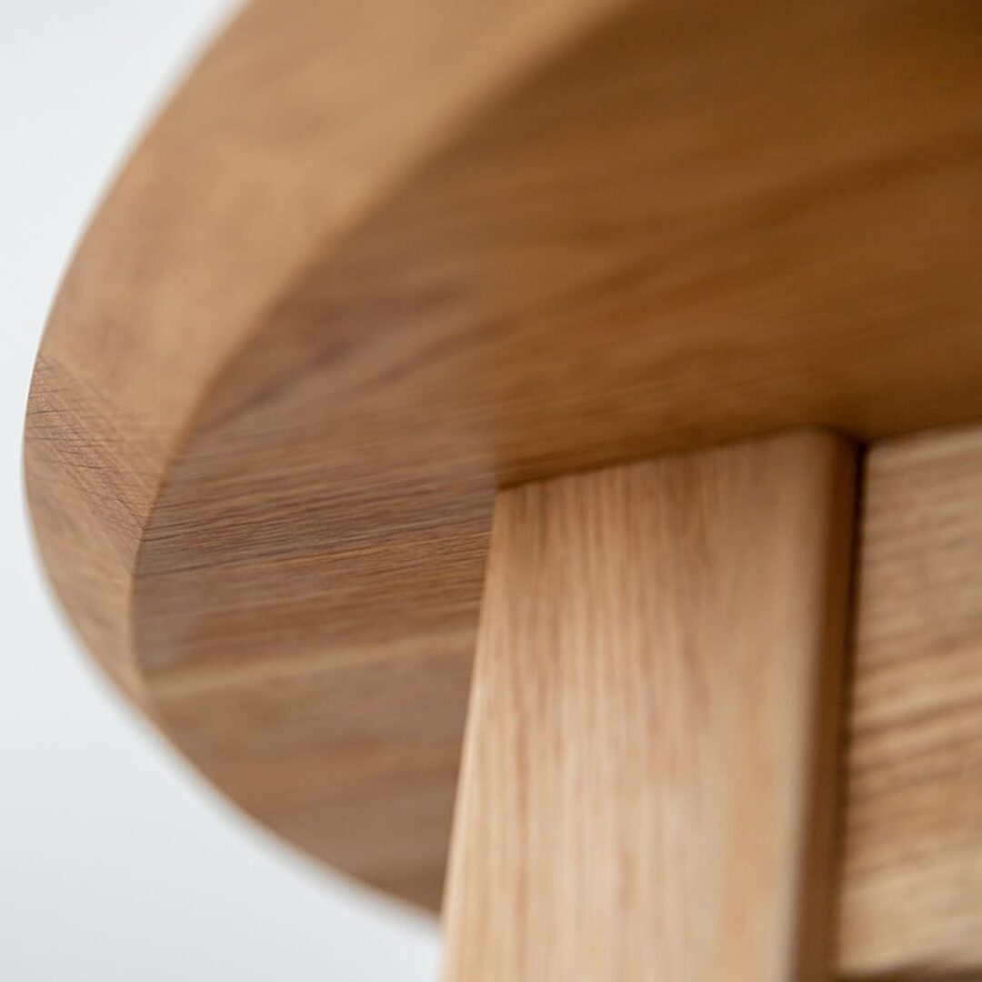 Lunden ümmargune tammepuidust söögilaud ühendab naturaalse materjali, minimalistliku disaini ja praktilise vormi.