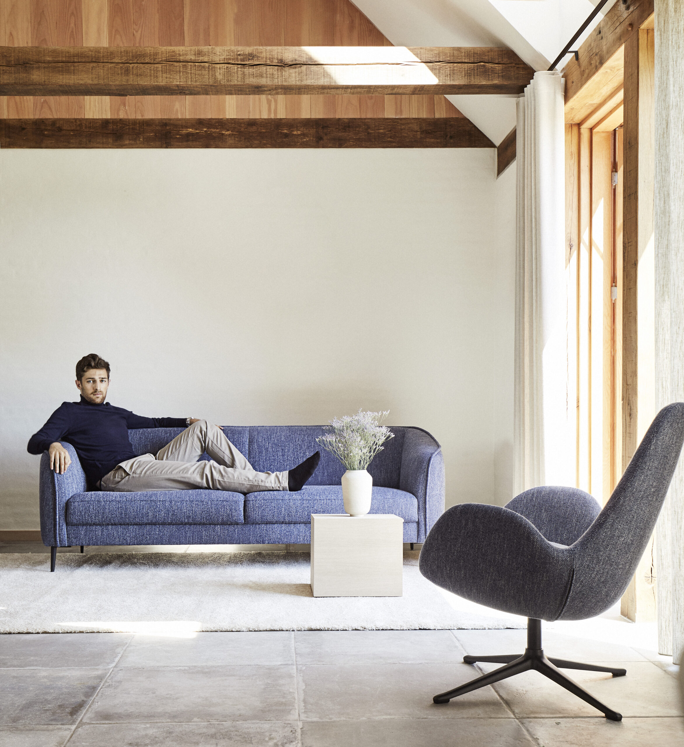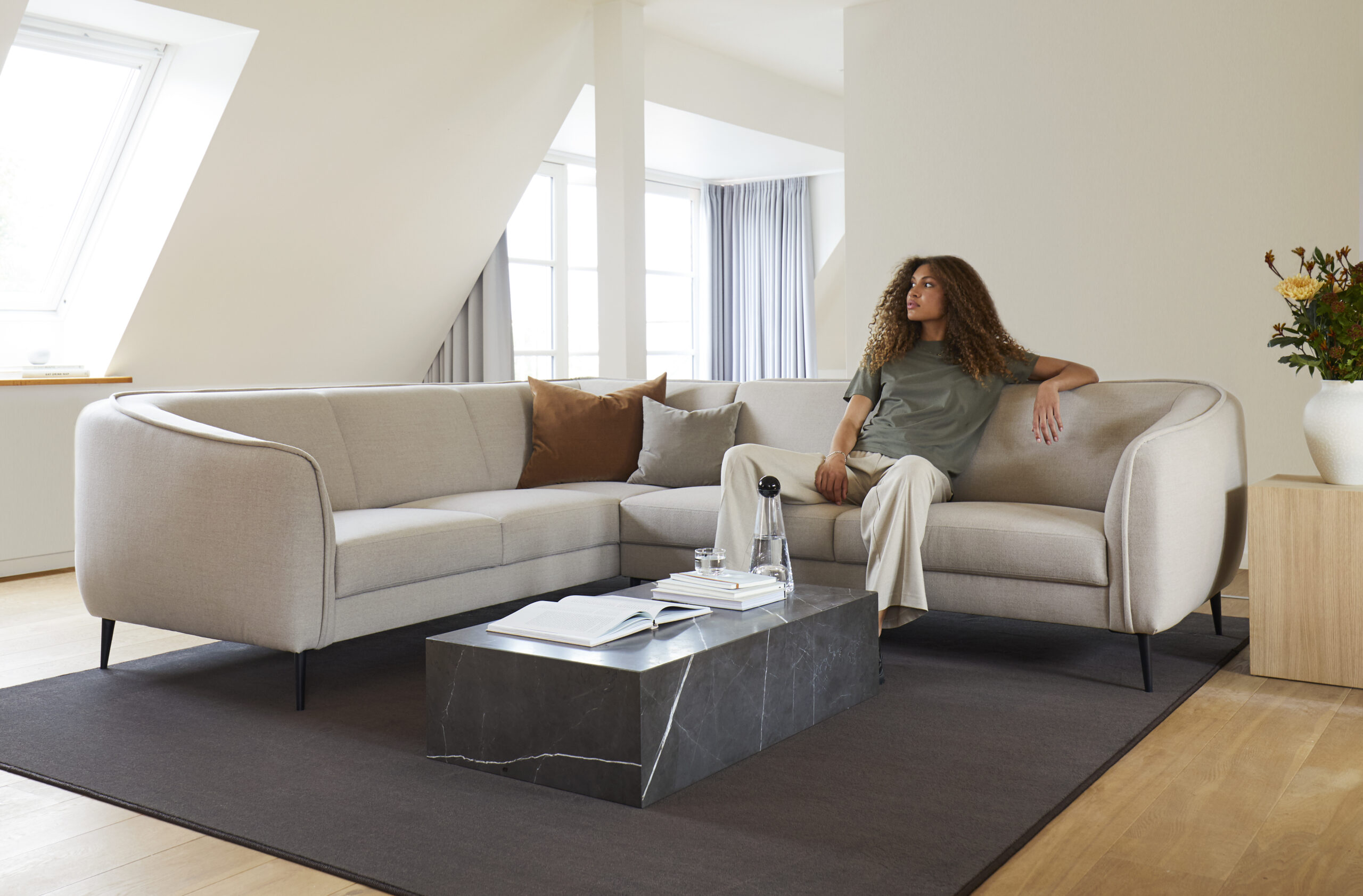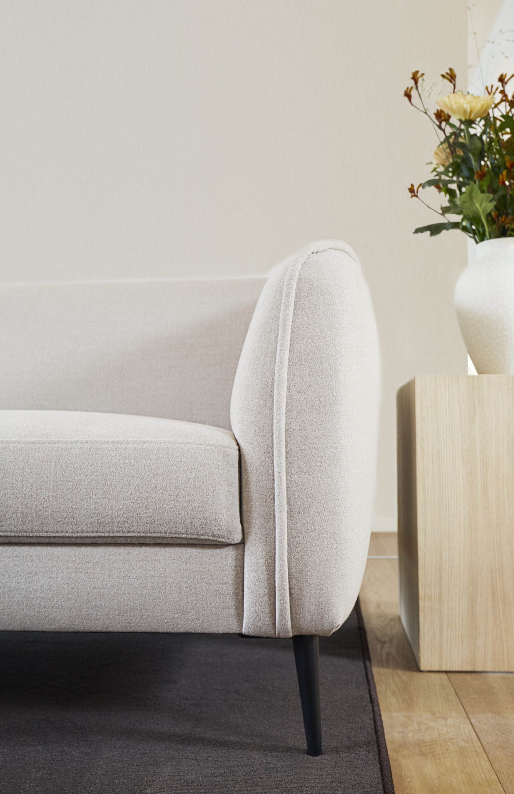 Puhtad ja täpsed jooned loovad diivani, mis mõjub ühtaegu ajatu ja kaasaegsena. Kergelt tõstetud vorm lisab modernset elegantsi ning hoolikalt läbimõeldud proportsioonid tagavad mugavuse ilma liigse raskuseta.