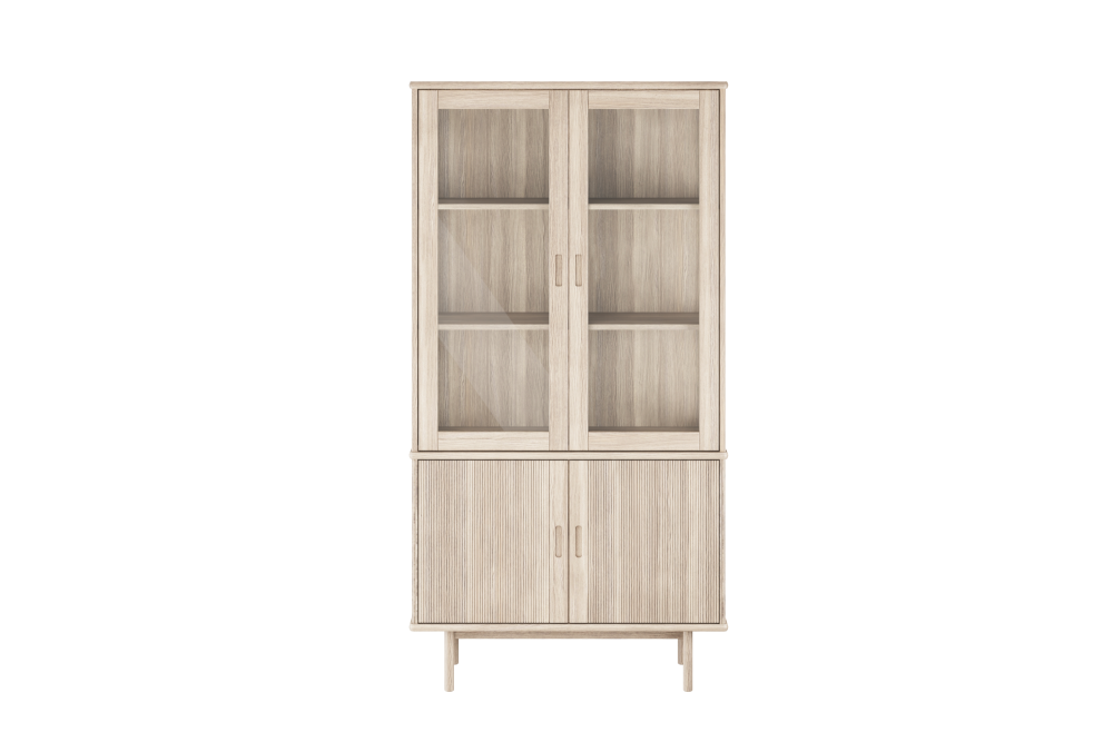 CASØ 330 vitriinkapp ühendab retrohõngulise inspiratsiooni ja modernse ilme. Viited klassikalistele ribipaneelidega ustele loovad ajatu karakteri, mida täiendavad elegantsed jooned ja hoolikalt läbimõeldud detailid. Soonitud esipaneelid koos klaasist ülaosa ja klaaskülgedega loovad kauni tasakaalu õhulisuse ja isikupära vahel.