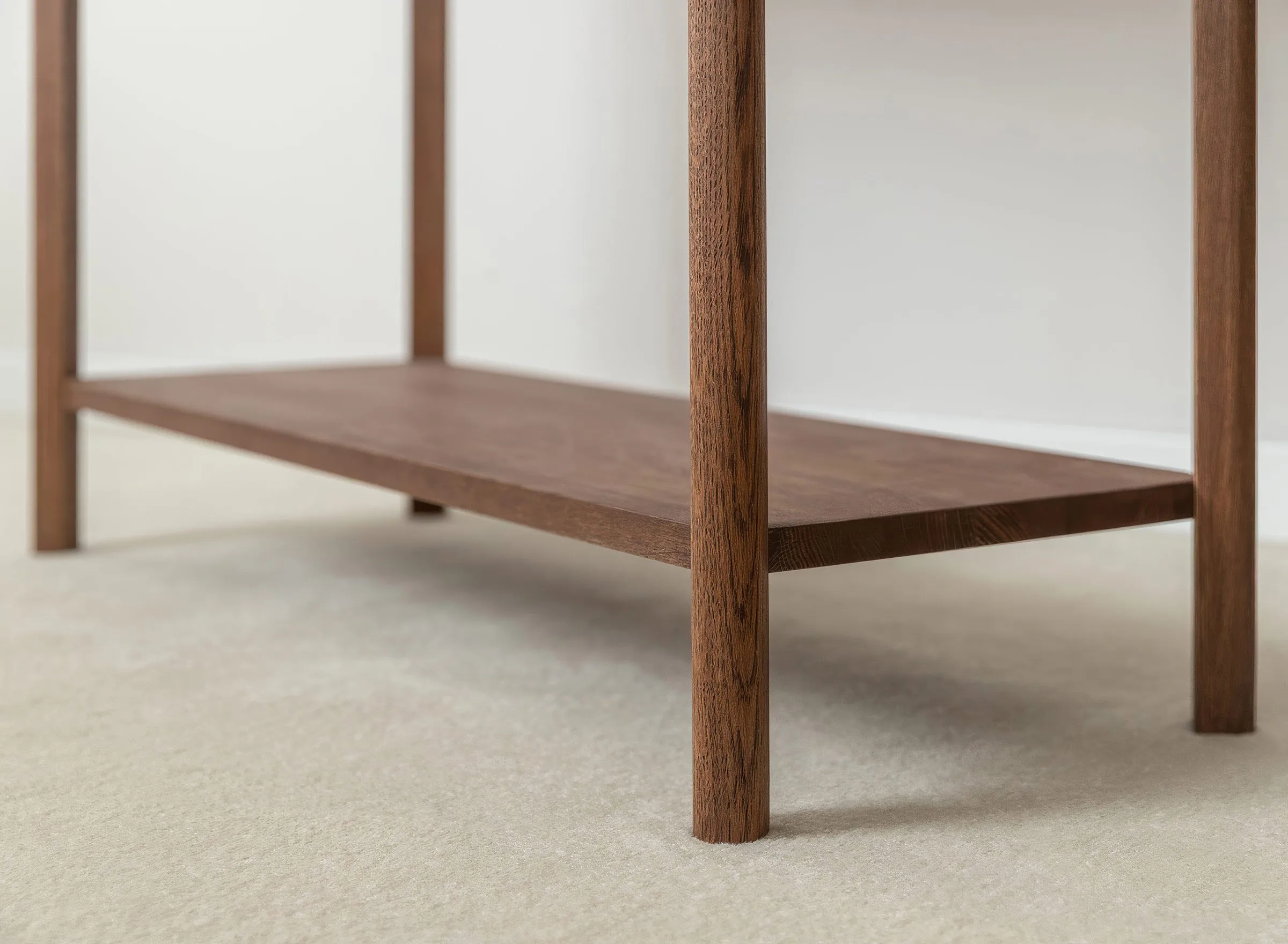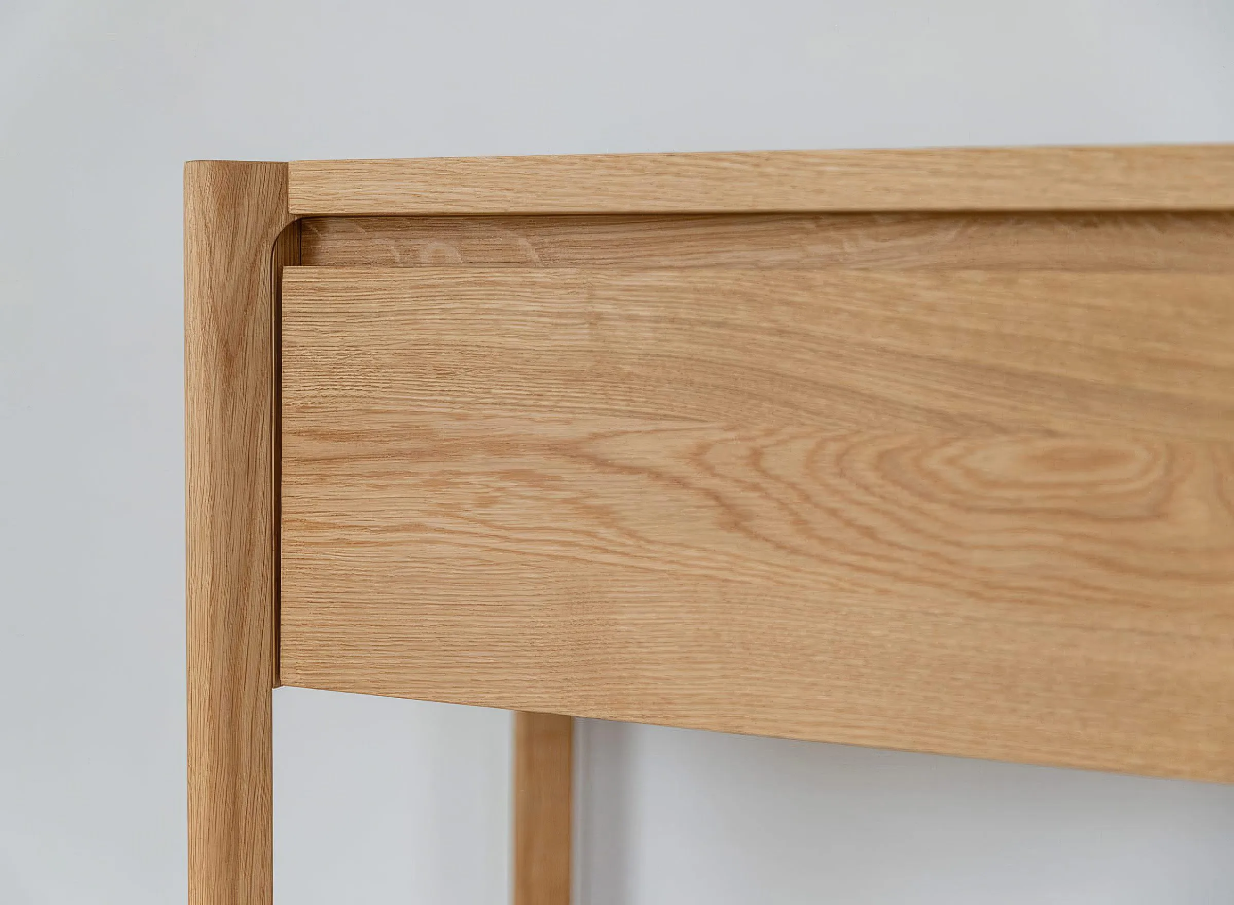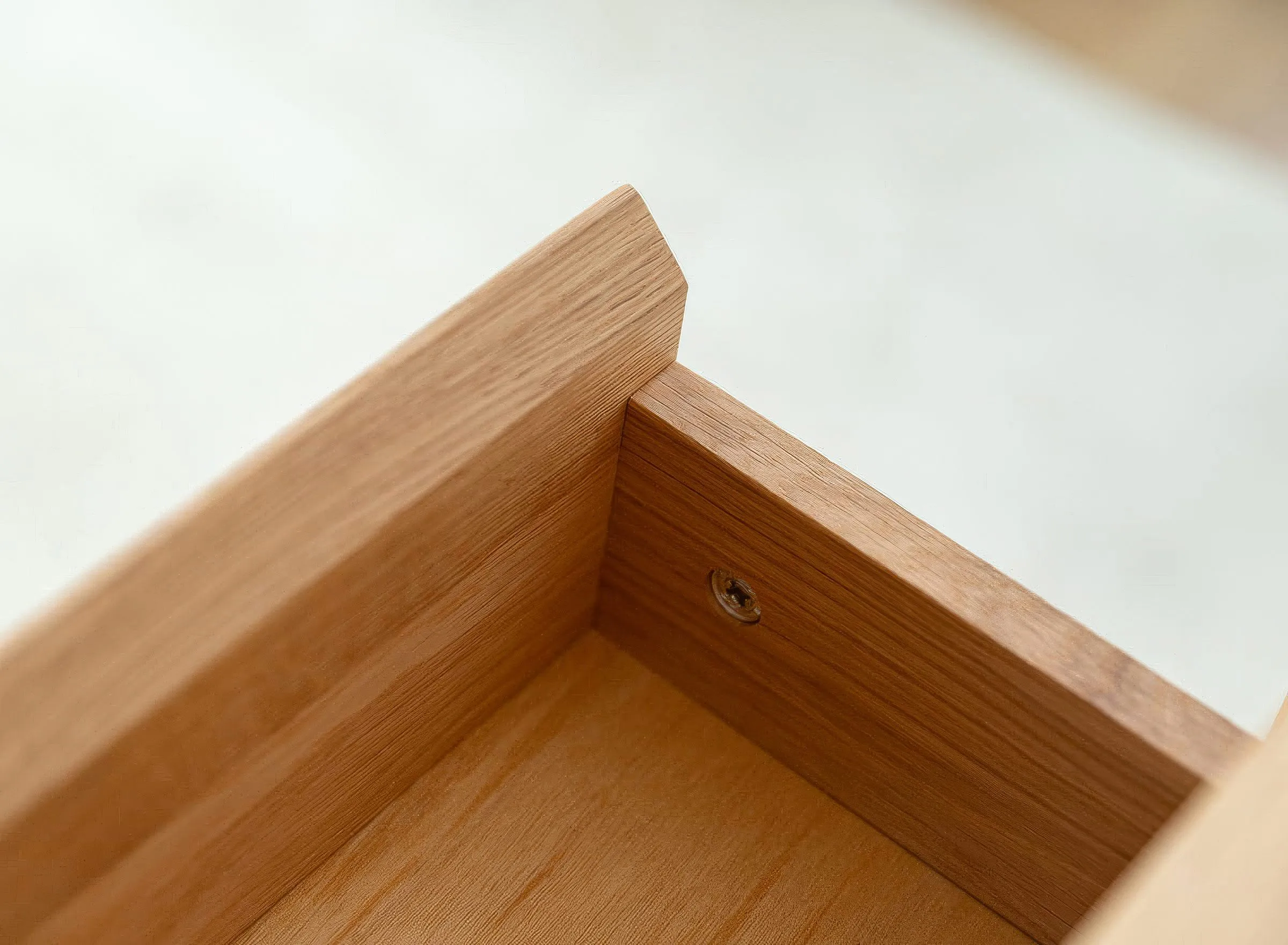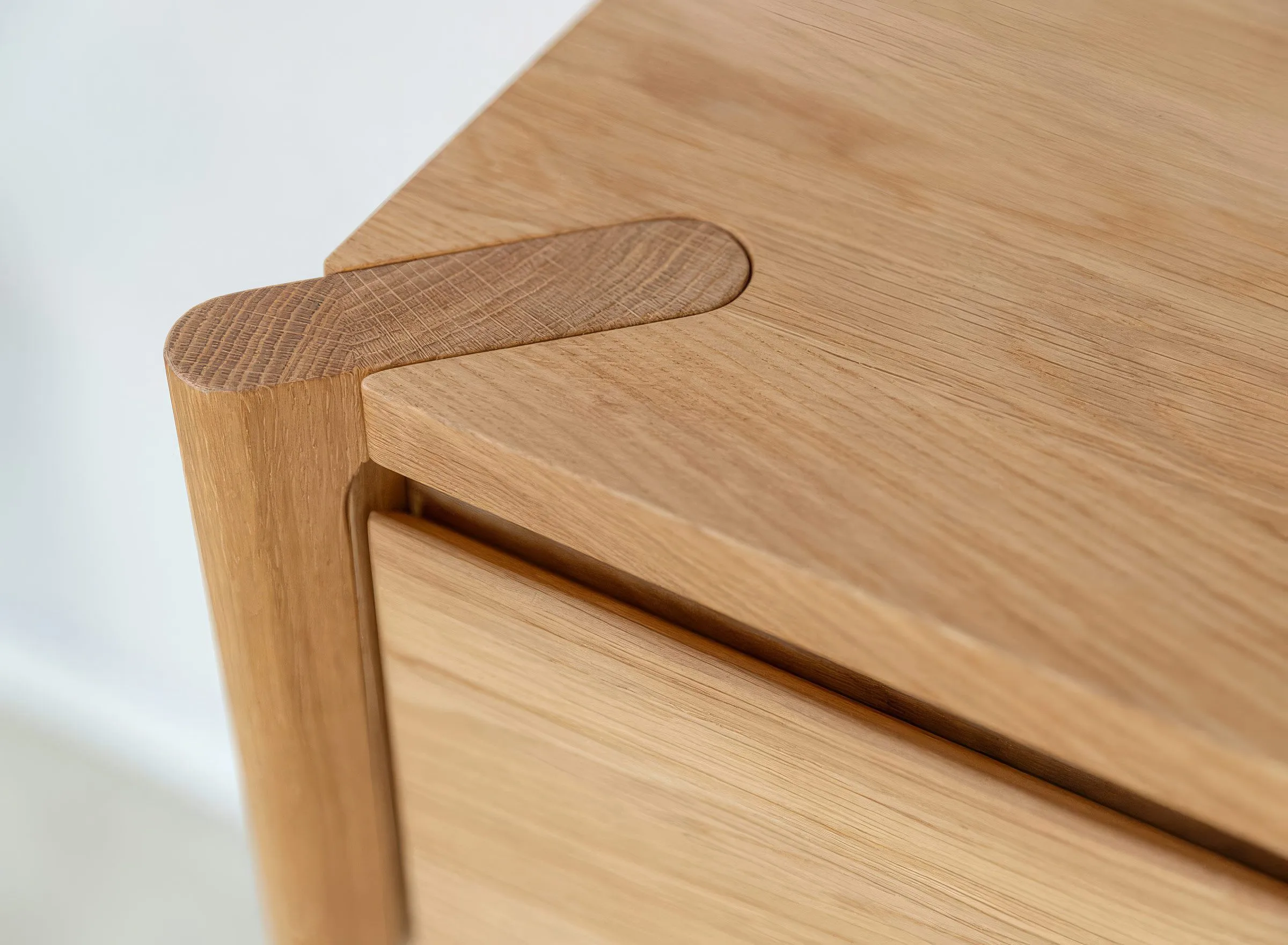 Mööbel on valmistatud täistammepuidust, mis on hinnatud oma tugevuse ja pika kasutusea poolest. Pind on viimistletud õliga, mis toob esile puidu loomuliku süümustri ja kaitseb seda igapäevase kasutuse eest. Minimalistlikku välimust täiendab freesitud käepide, mis on integreeritud sahtli esipaneeli. Sahtel on varustatud vaikse sulgumise mehhanismiga, mis tagab sujuva ja mugava kasutamise.