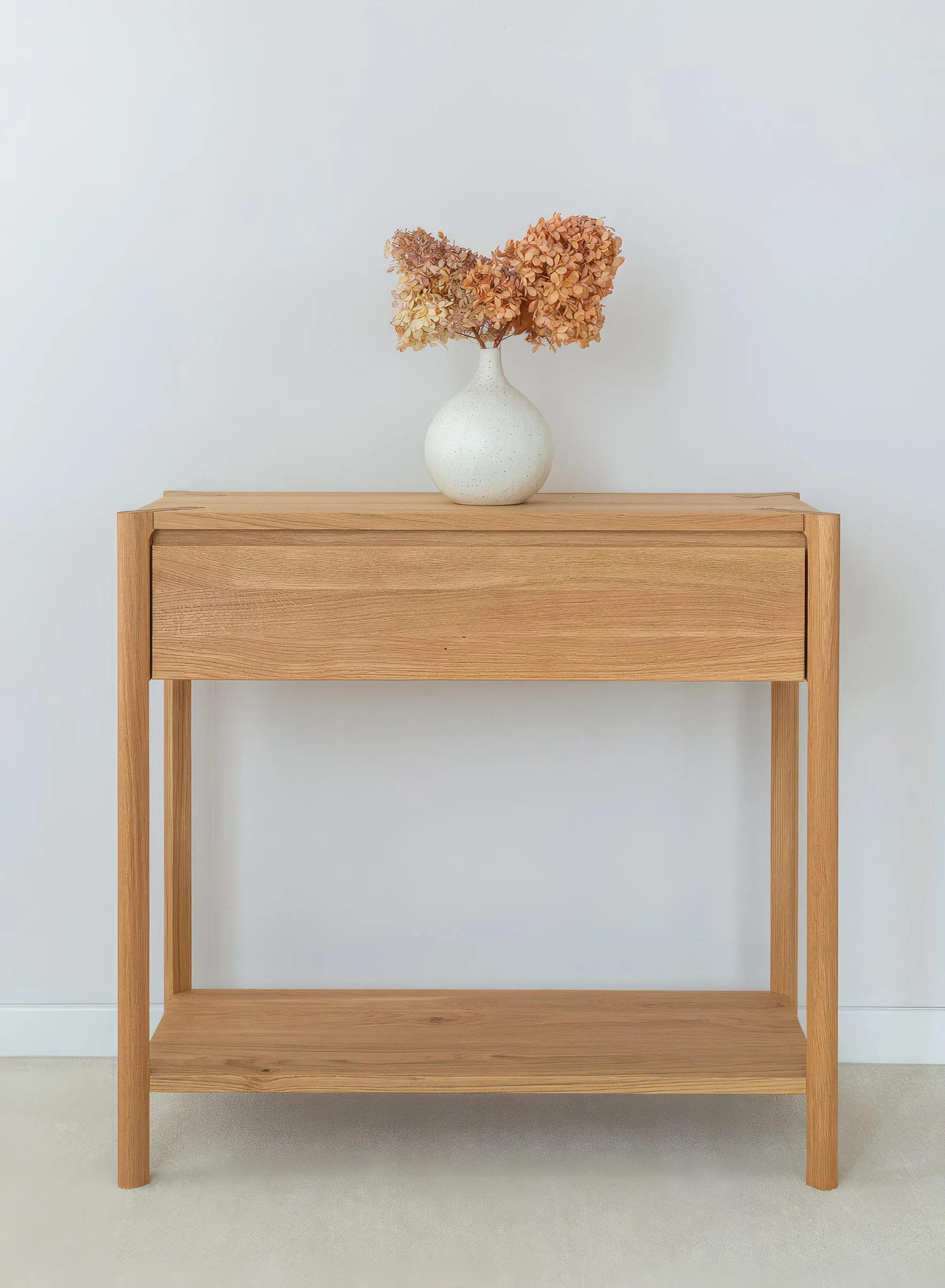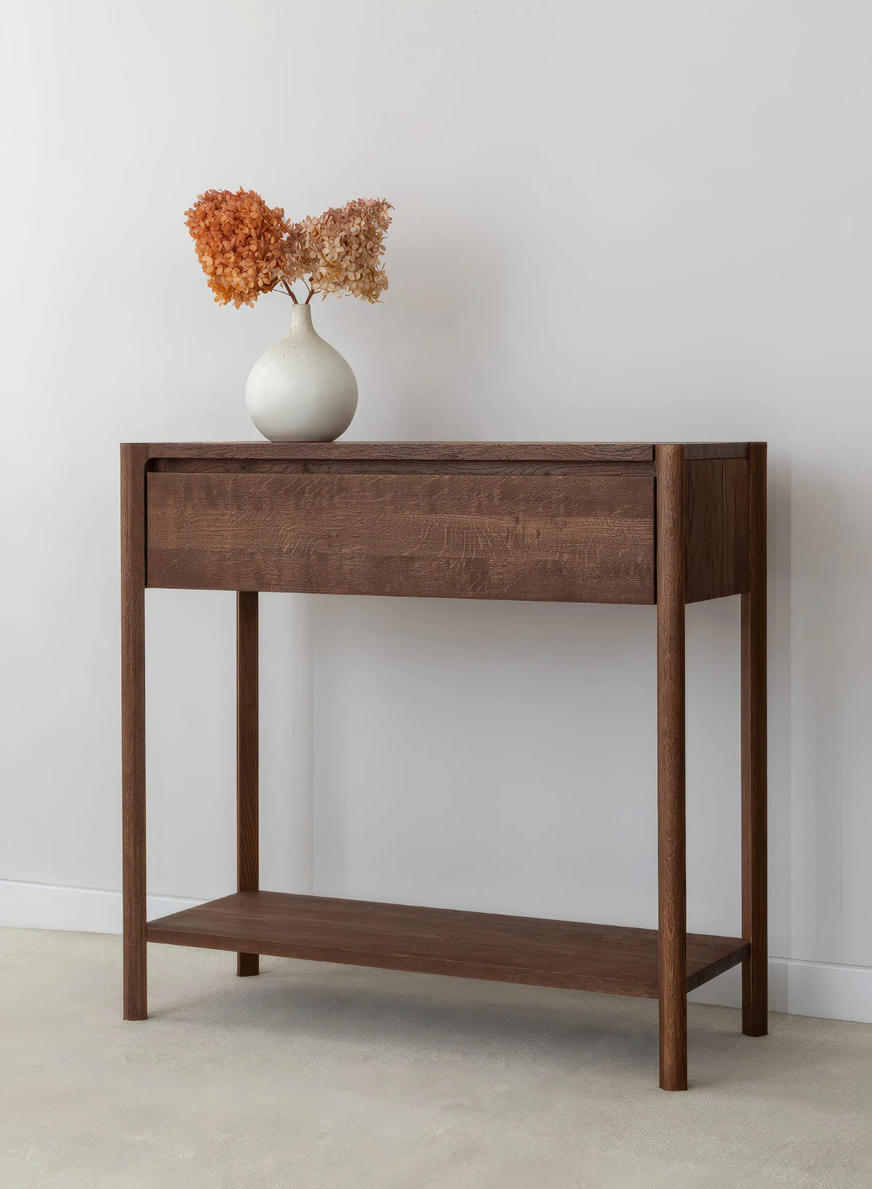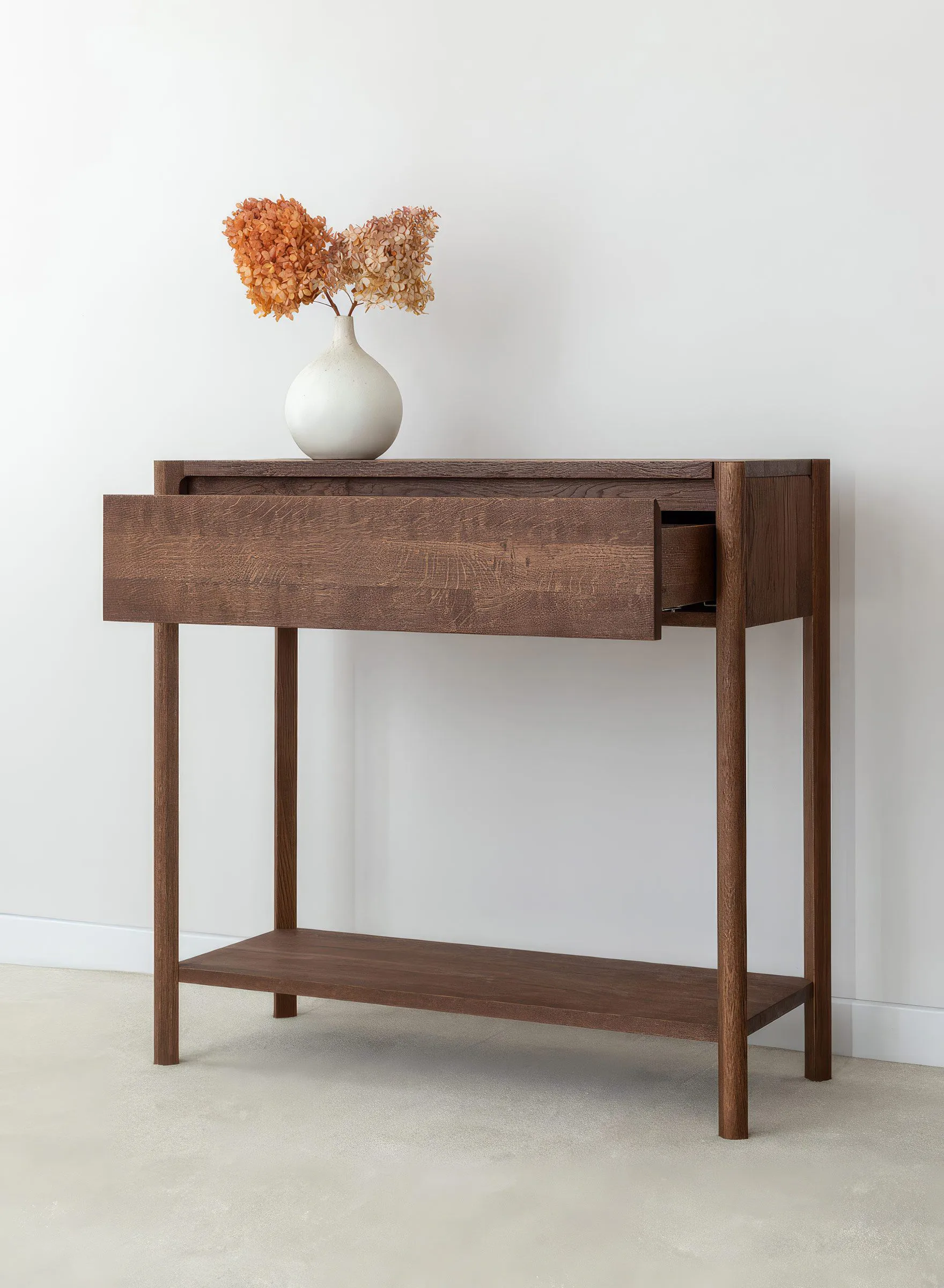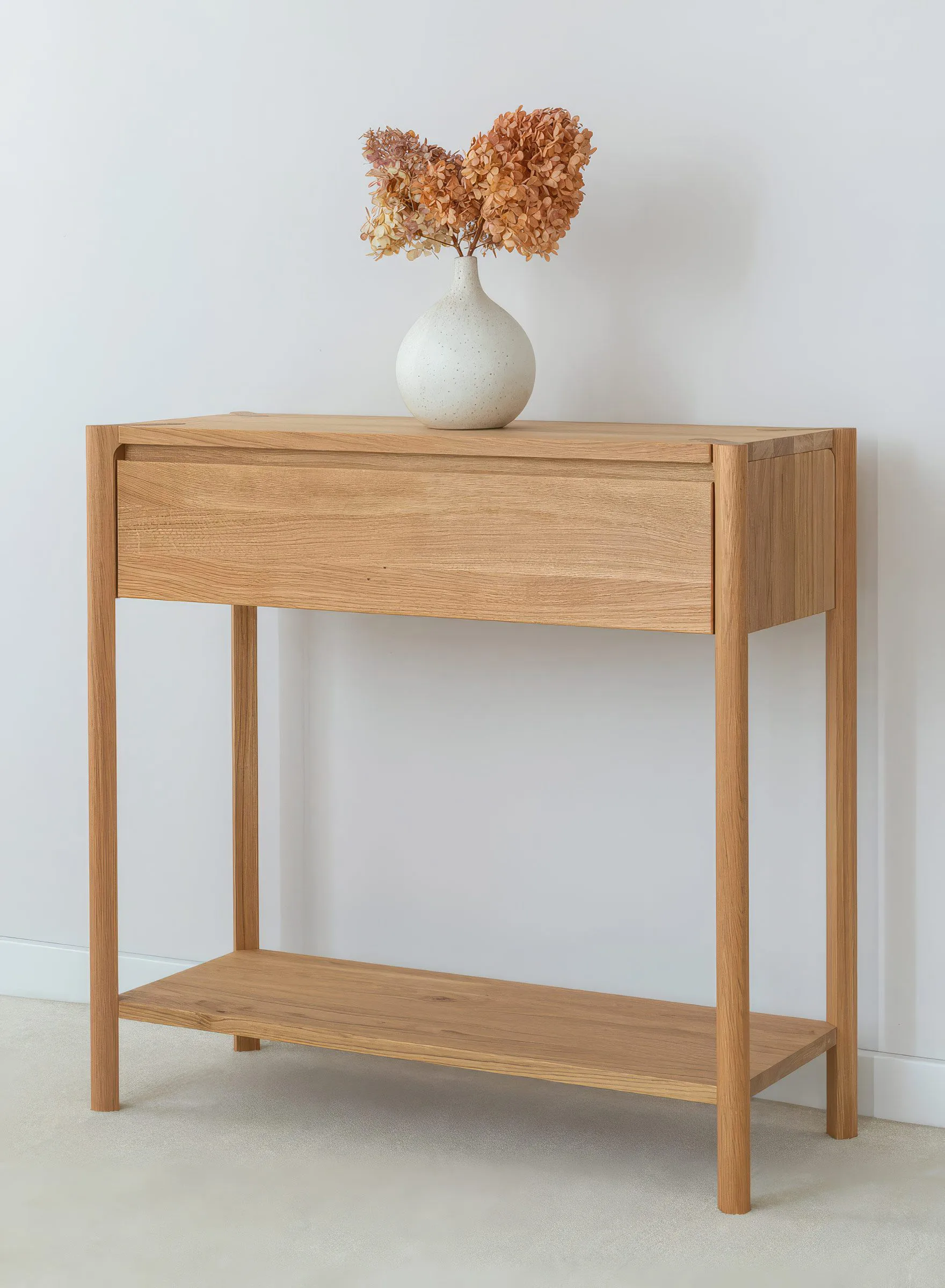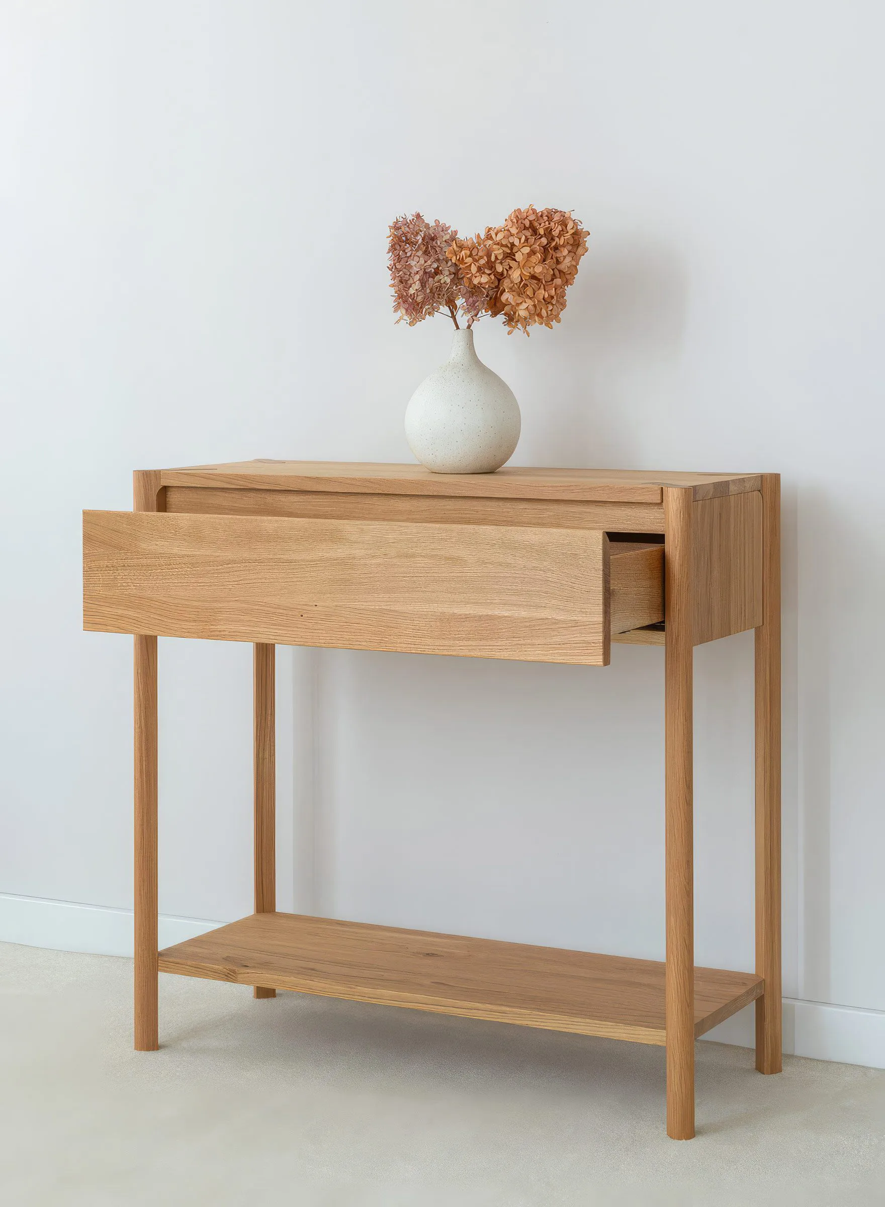 Campy kollektsiooni tammepuidust konsoollaud sahtliga ühendab minimalistliku disaini ja praktilise funktsionaalsuse, mis sobib hästi esikusse, elutuppa, magamistuppa või isegi kodukontorisse.