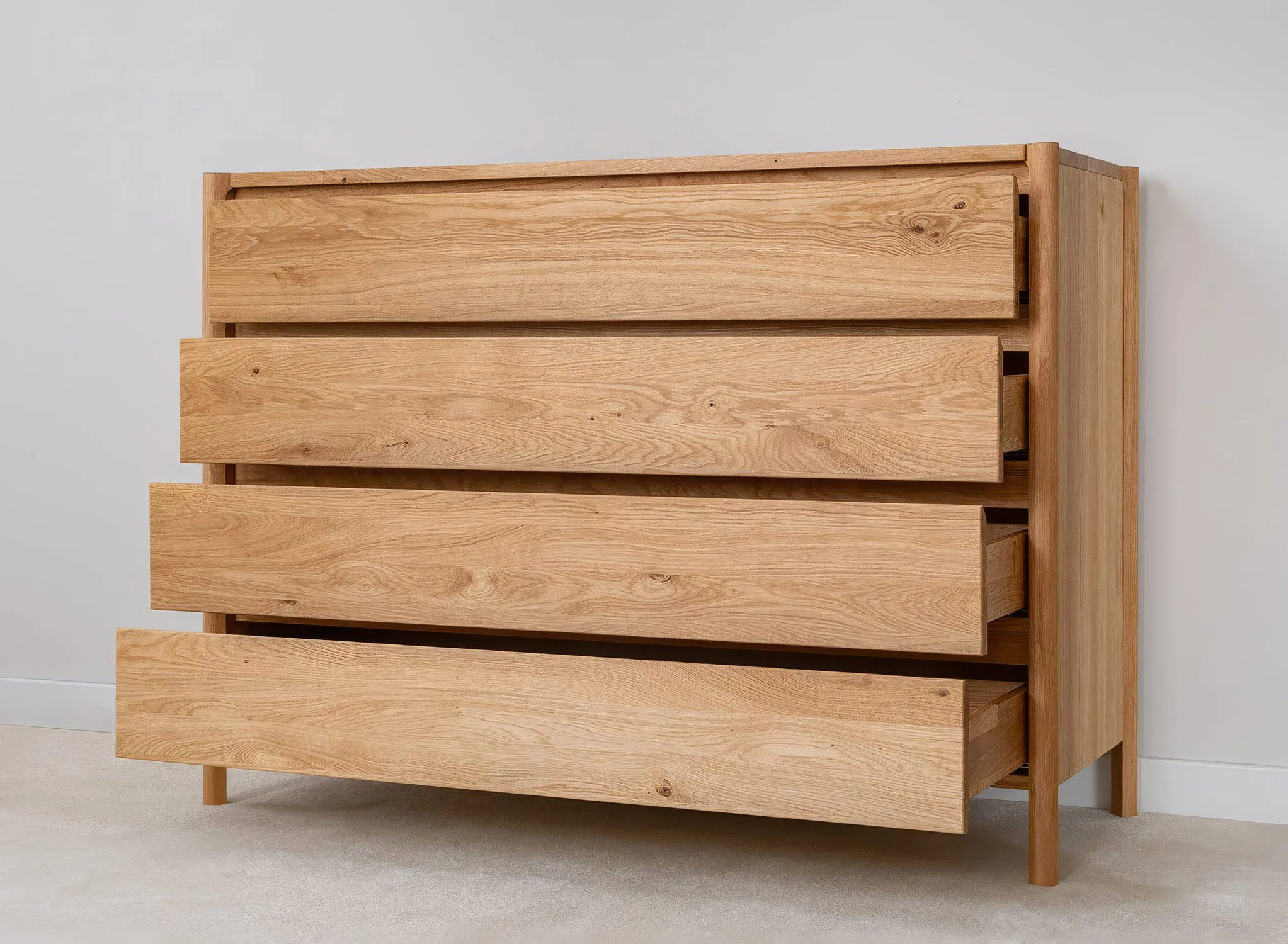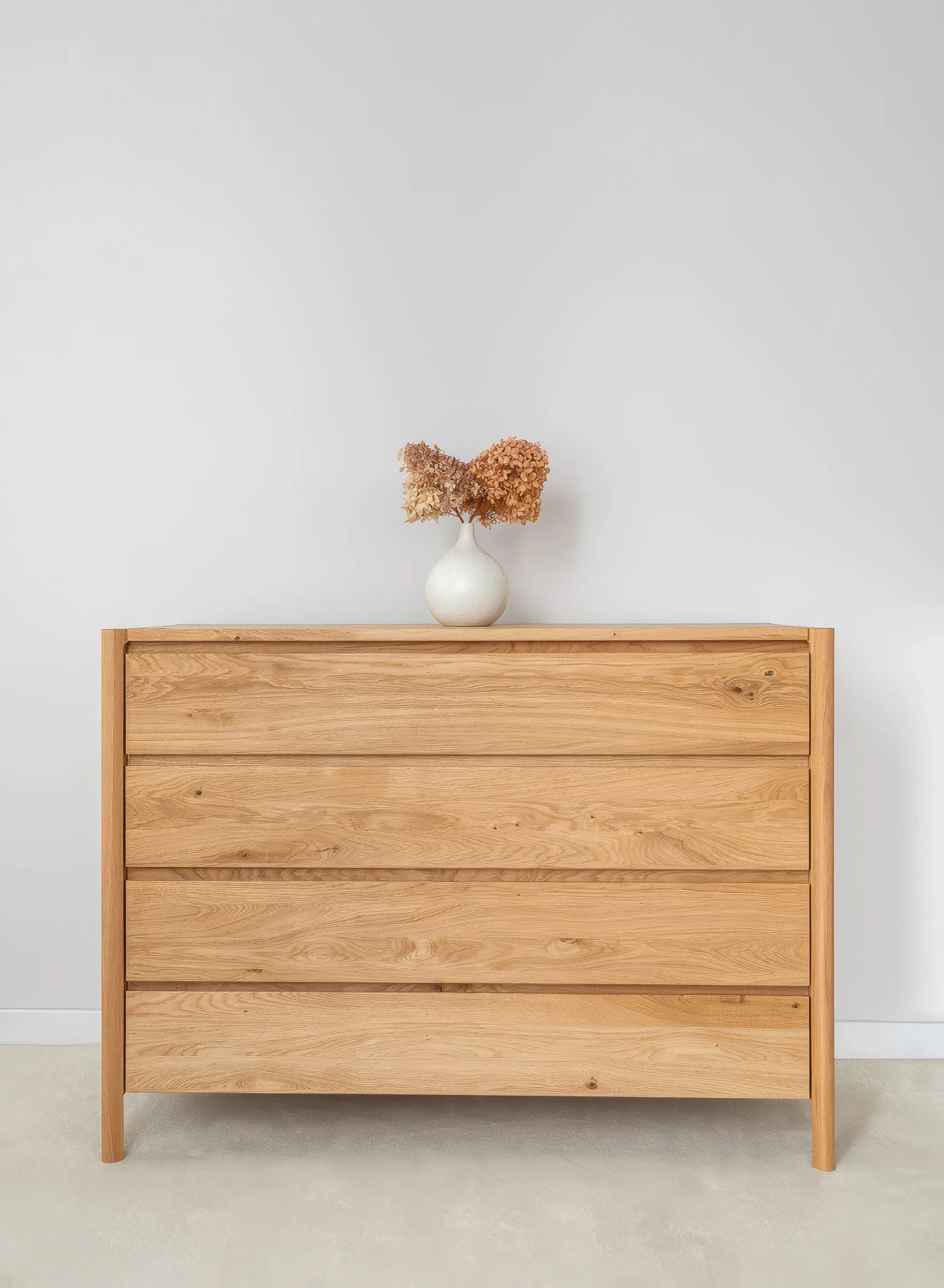 Campy kollektsiooni täispuidust kummut on ajatu ja elegantne mööbliese, mis sobib suurepäraselt modernsesse ja minimalistlikku interjööri. Visuaalselt kerge, kuid konstruktsioonilt tugev disain sobib hästi nii valgusküllastesse magamistubadesse kui ka skandinaavialiku stiiliga eluruumidesse.