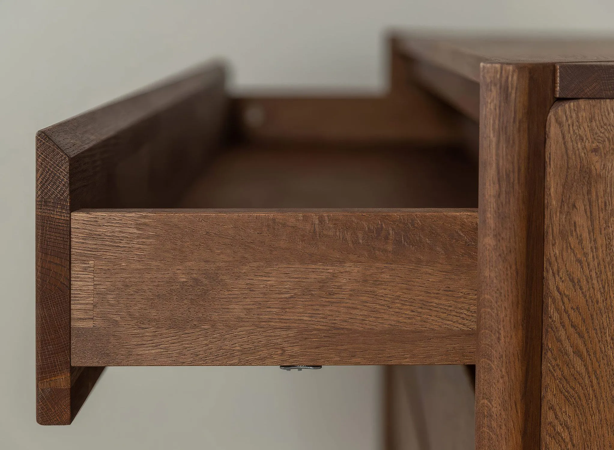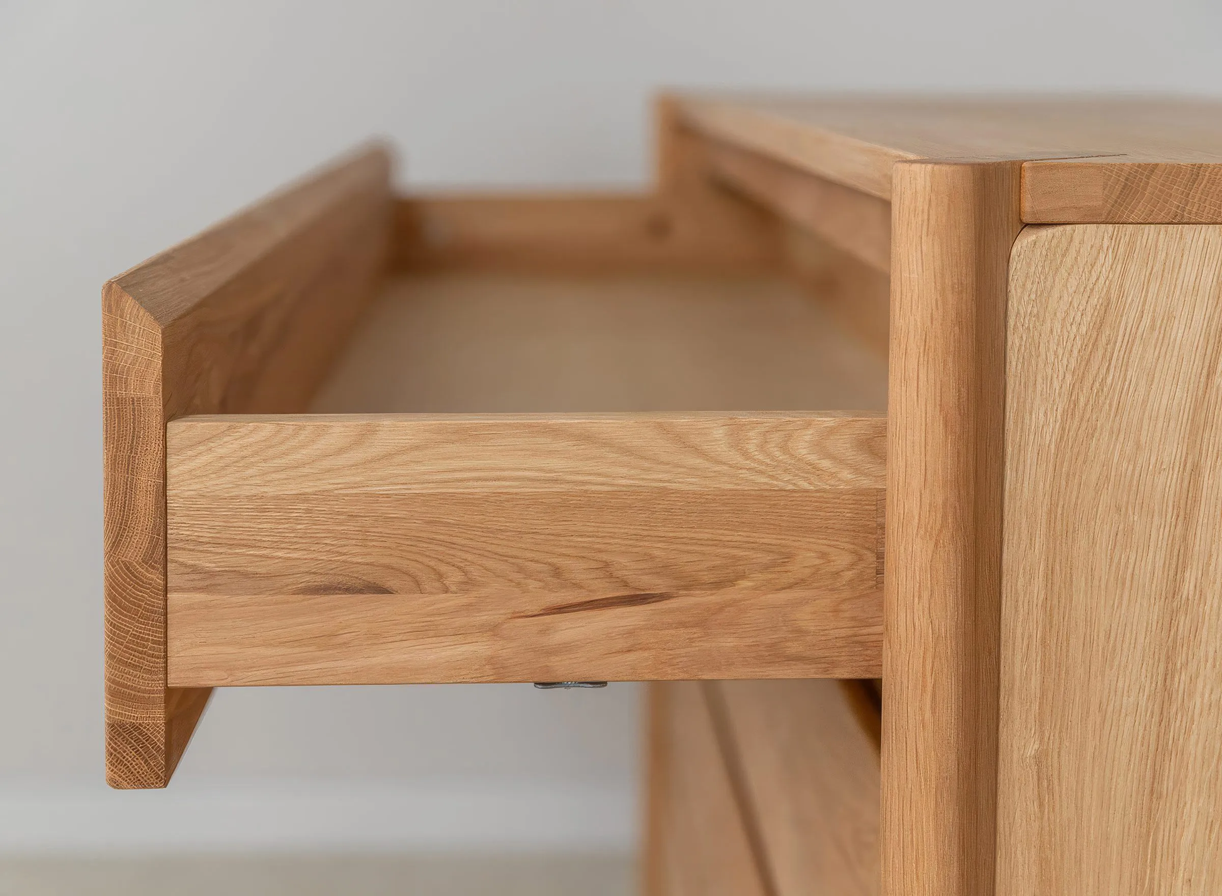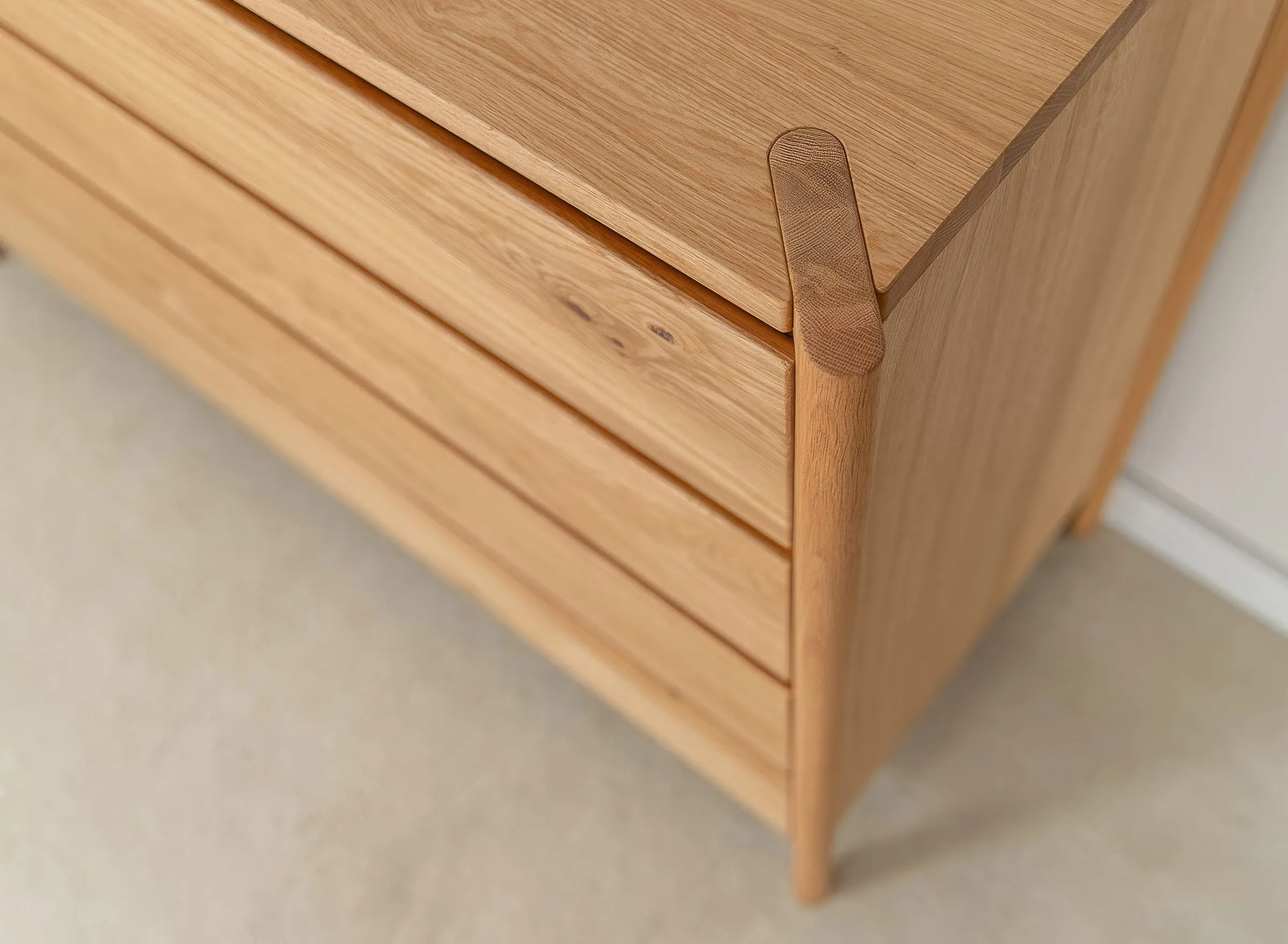 Kummutile on iseloomulik puhas ja minimalistlik vorm ilma klassikaliste käepidemeteta. Käepidemete asemel on esipaneelidel peened freesitud sooned, mis rõhutavad kaasaegset disaini ja annavad mööblile elegantse välimuse.