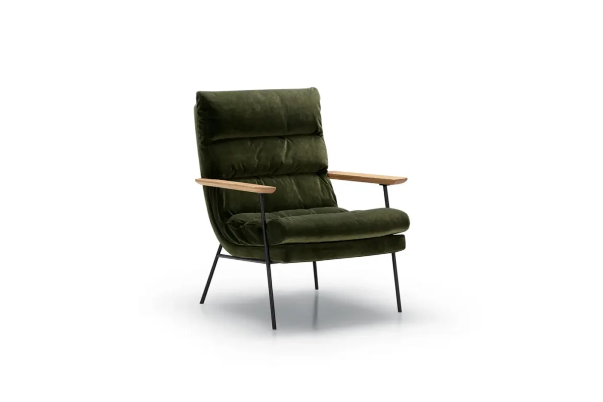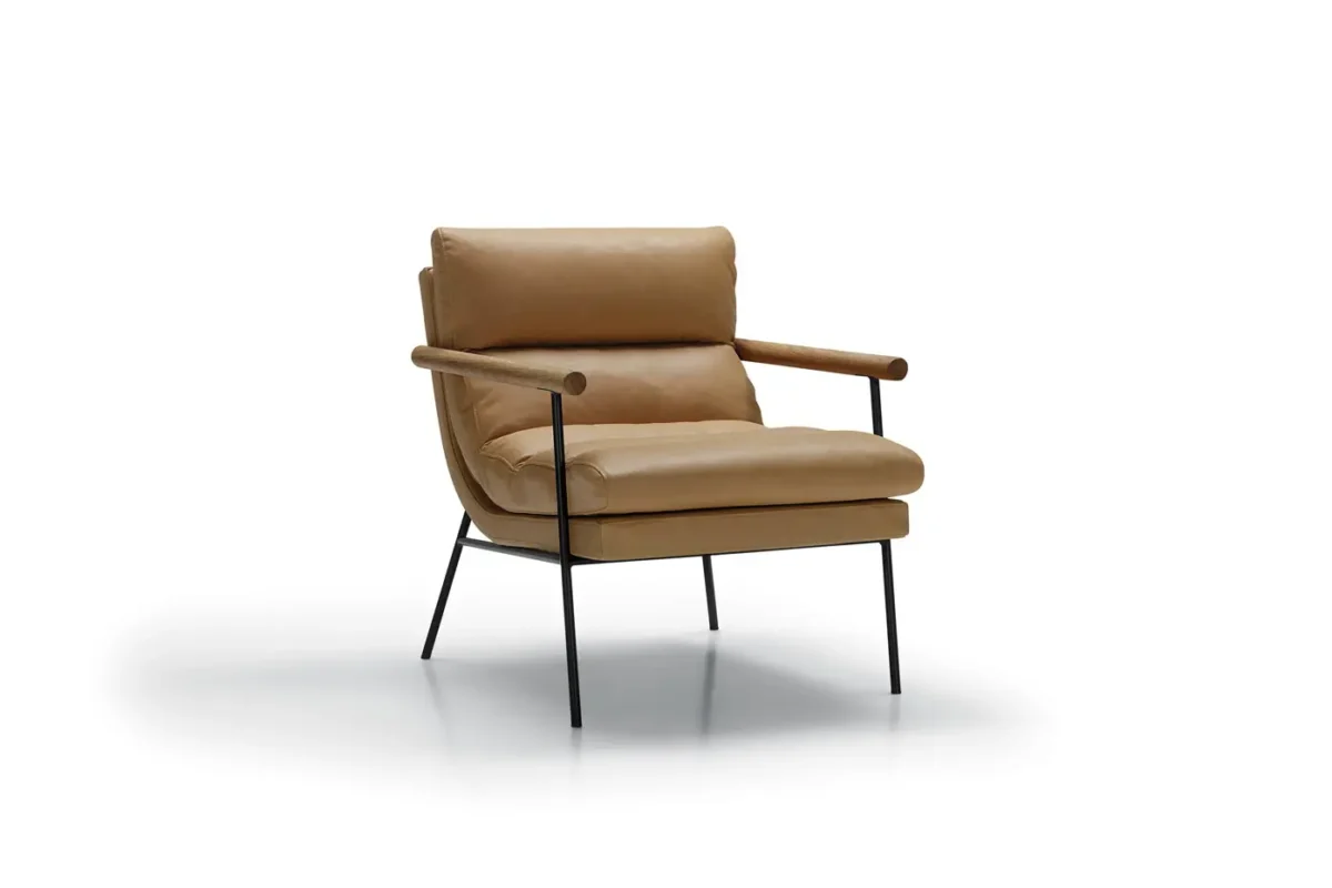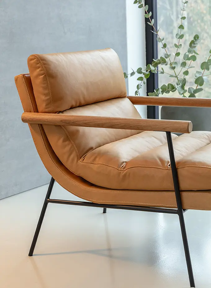 Bill tugitool – elegants ja mugavus ühes, mis ühendab pehme vormi, tugeva metallskeleti ja individuaalsed valikuvõimalused. Tugitool on saadaval nii kanga- kui nahakattega ning seda täiendavad viimistluseks väärikad tamme detailid.
